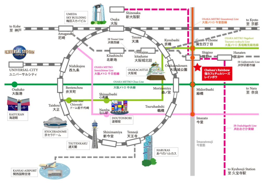 大阪市内路線図マップ Osaka City Train Rout Map